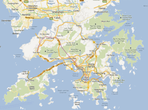 First, here is a HK overview. Click for a bigger version, if you wanna. Shenzhen, at the top, is the mainland China city that borders HK.