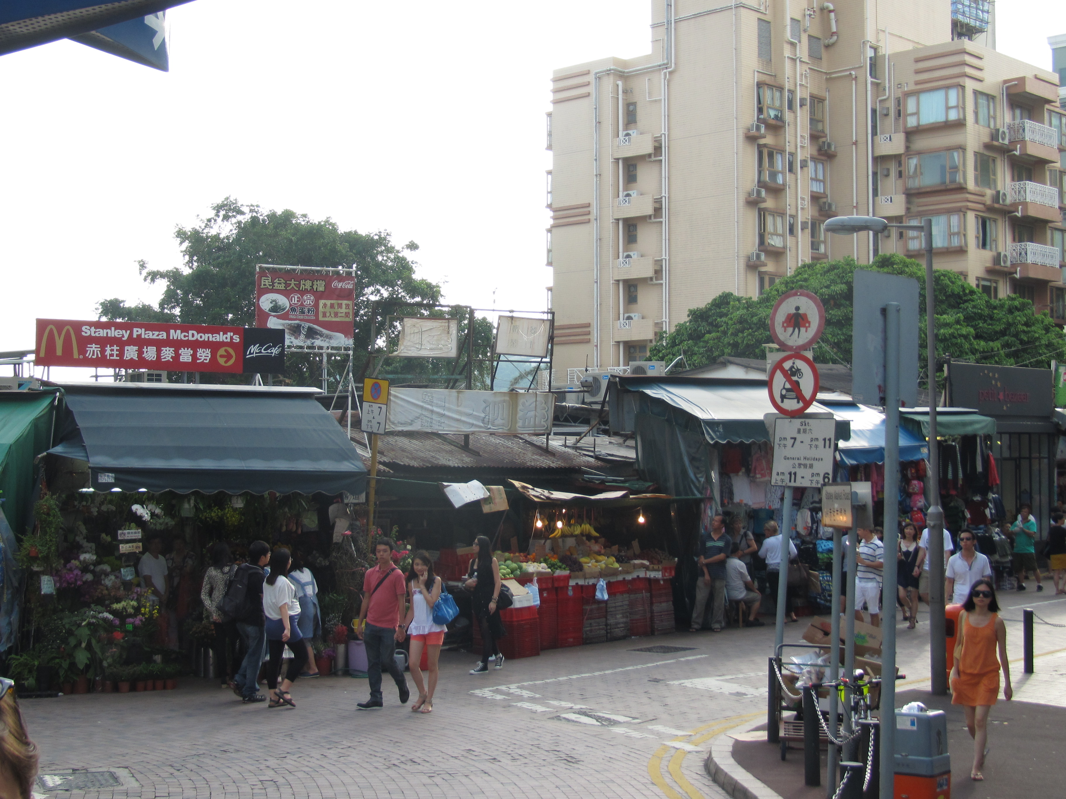 Stanley was briefly the administrative center of HK after the British took over in 1842. Nowadays it’s known for its beautiful seaside promenade and a pretty amazing set of market stalls in which you can practice haggling for touristy (but fun) trinkets, t-shirts, and the like. We gave it a shot and succeeded. Then I tried to knock 30% off the price of a package of handkerchiefs (it was hot out there and I needed something for the ol’ brow) and was told that in that particular shop the prices were fixed and non-negotiable. Well, I certainly wasn’t going to pay the extra HK$20 (US$2.50) and walked away. Later on, I could indignantly laud my principled stand while sweating pretty freely in the 90°+ heat. I should have just bought the damn things.