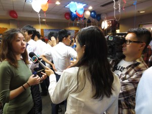 Here’s a student being interviewed by one of the Hong Kong television stations. I would tell you what they were talking about, but it was pretty loud in there and I couldn’t hear. Also, I don’t speak Cantonese.