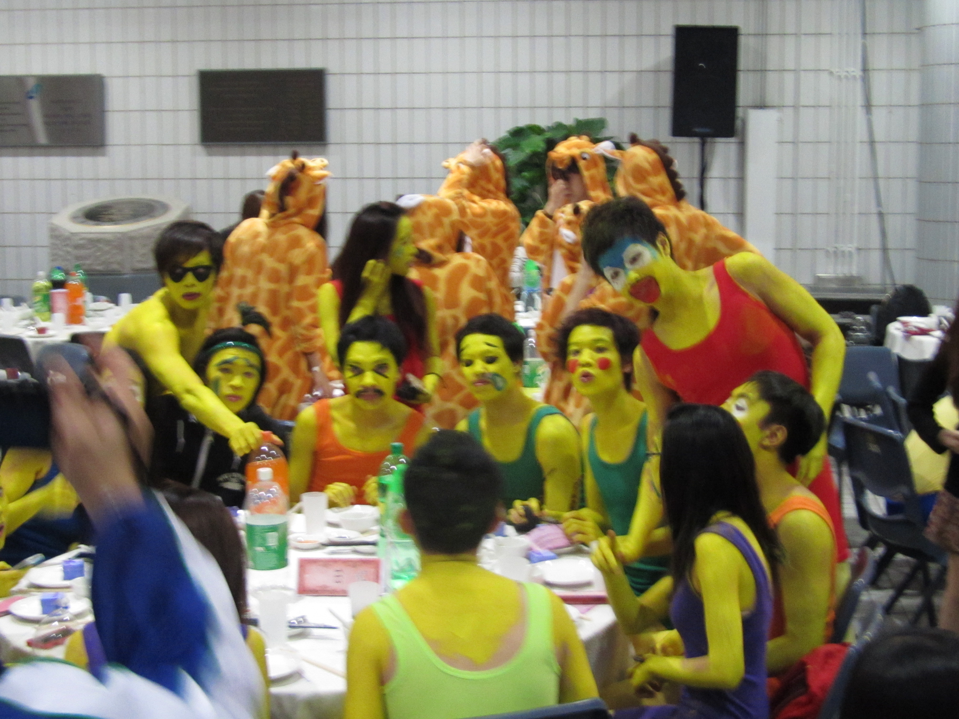 But the main event was the chance for each student group—and there were many in attendance—to participate in the “Oh my banquet style” (i.e., Gangnam Style) dance competition. Each group had 1 min. to dance along to a song of their choice. Here’s the aseptic packaging doing their bit: