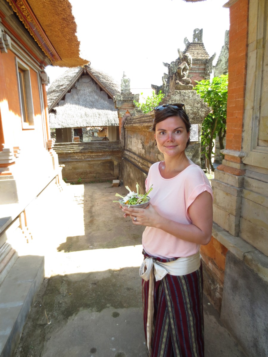 Cate bought an offering basket to leave in the temple.