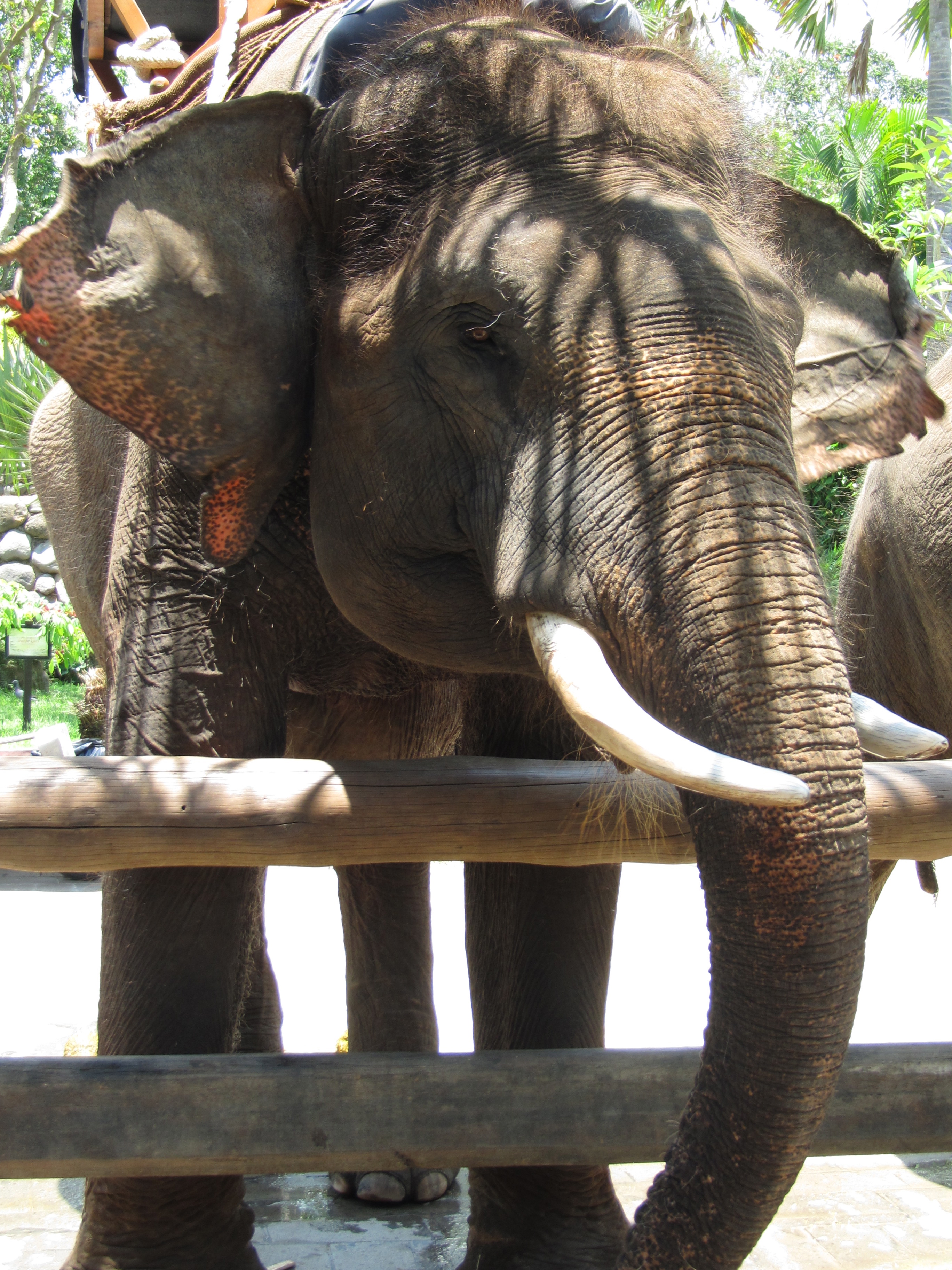 Our ride, a Sumatran elephant named Budy. We asked the handler if he rode Budy every day and he said “Of course. One elephant, one trainer.”