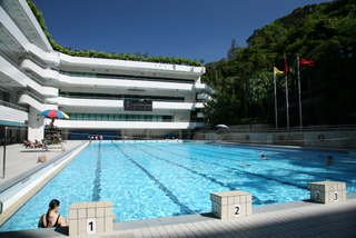 There is quite a nice gym here at CityU. There are things about it that very much make it seem not like an American gym—way more badminton and table tennis courts than basketball, for example—but that’s fine. It’s got one of those swanky golf simulation rooms, where you can do driving practice in front of a screen that projects a fairway on it, and estimates your drive length once the ball hits the screen. I don’t golf, but that’s high-tech cool. It’s even got a gorgeous outdoor pool: