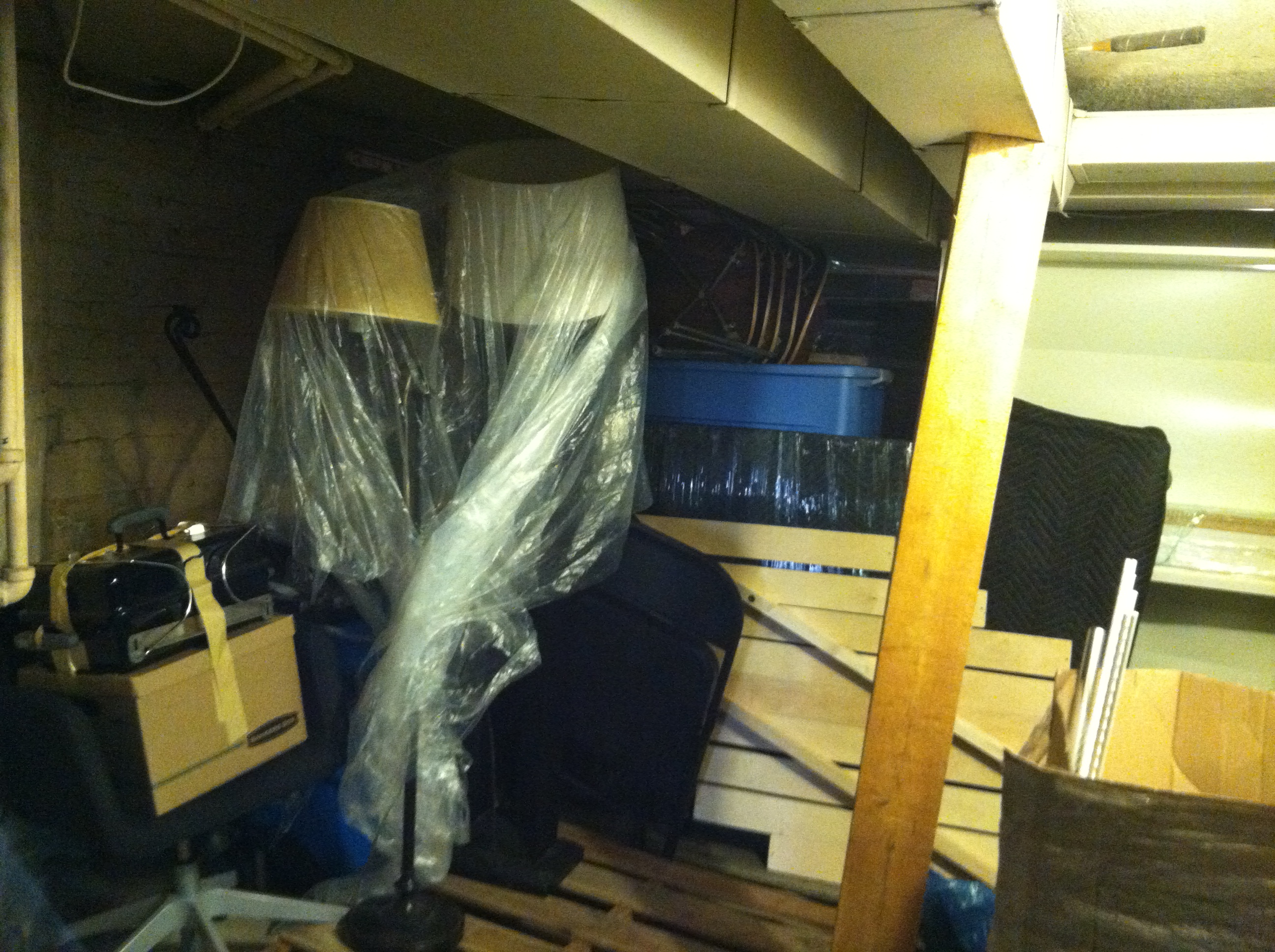 This is what it looked like when all was said and done: once we had packed everything, loaded a bunch of it into a van and had movers load the rest of it into a truck, and crammed it all into Paul and Rodda’s basement (generously donated for a year of housing our too-many-books et cetera).