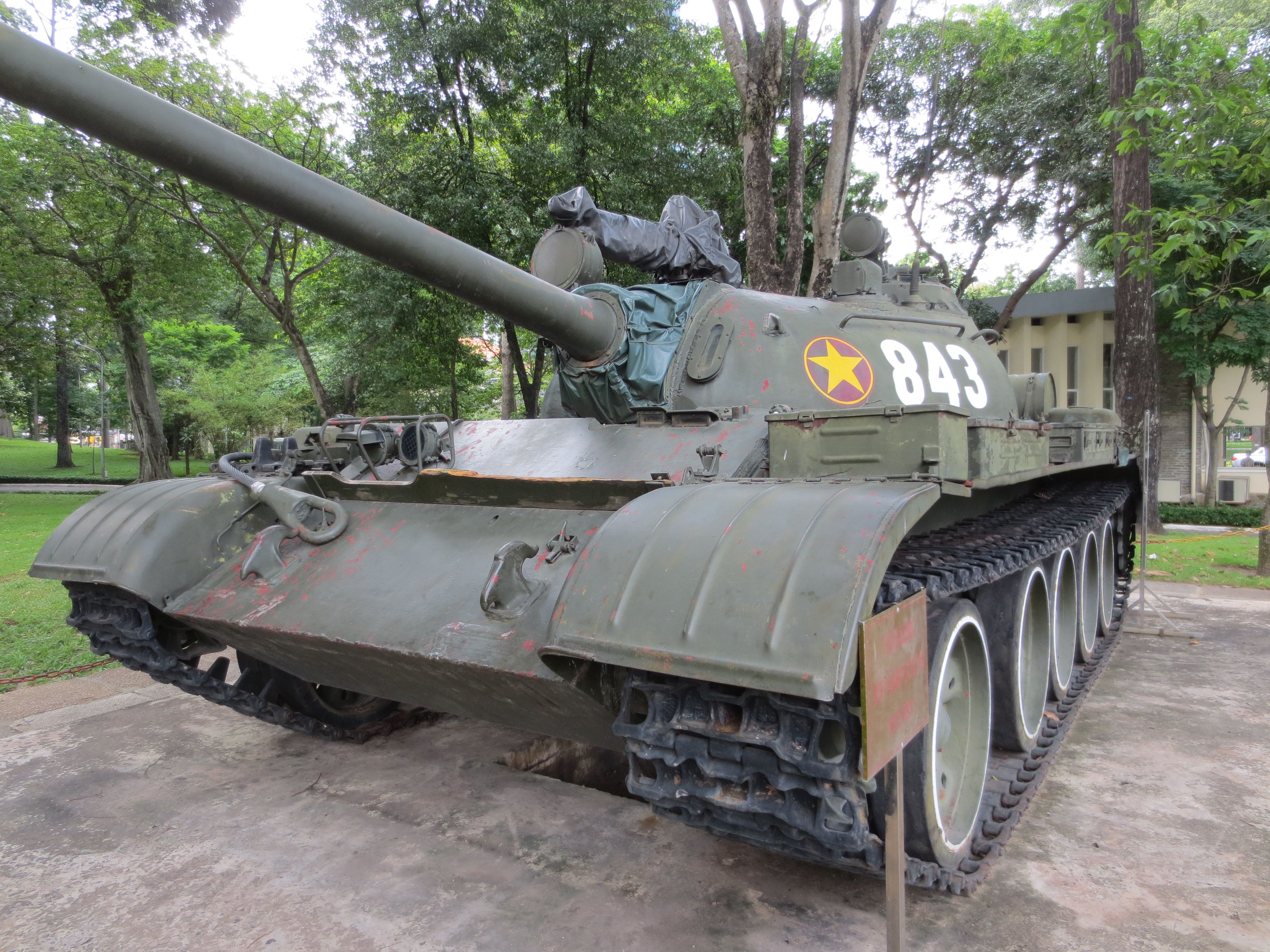 A replica of the tank that crashed through the palace gates on April 30, 1975.